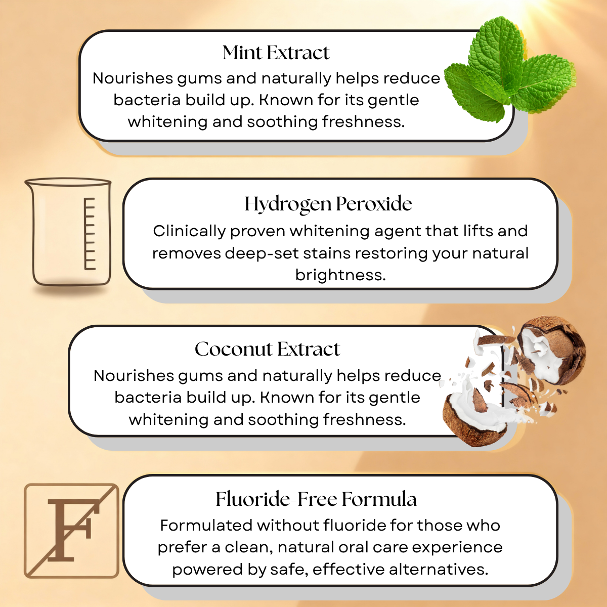 Powered by coconut and mint extracts with gentle whitening actives — safe, vegan, and refreshing.